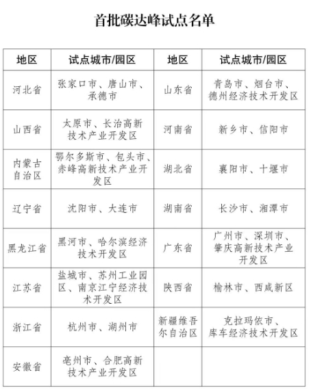 國家碳達(dá)峰試點(diǎn)建設(shè)方案