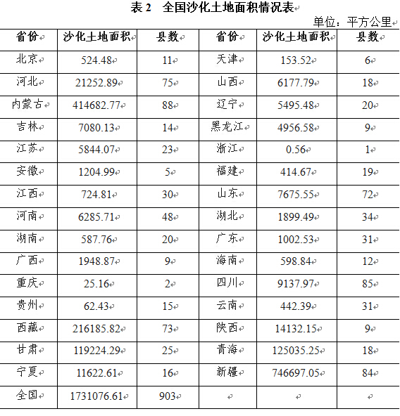 截至2009年底,全國沙化土地面積為173.11萬平方公里,占國土總面積的18.03%。動(dòng)態(tài)情況,2005-2009年五年間年均減少1717平方公里。